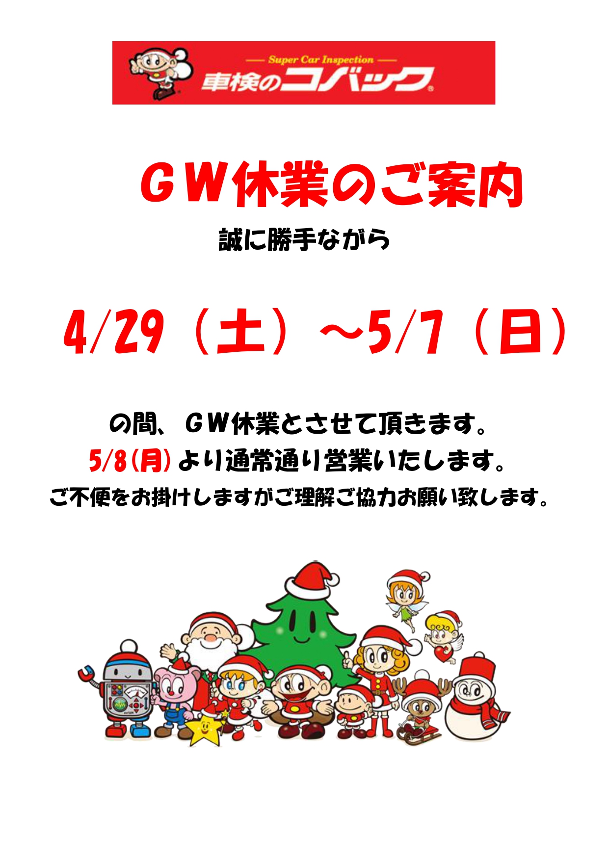 ※5/8(月)より通常営業いたします。